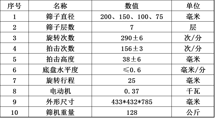 BZJ-200拍擊式標準振篩機主要技術參數: