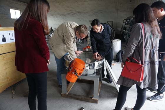 2017年10月10日,德國客戶朋友協同翻譯來我公司實地參觀考察‘大漢牌’ZPS系列直排式振動篩。